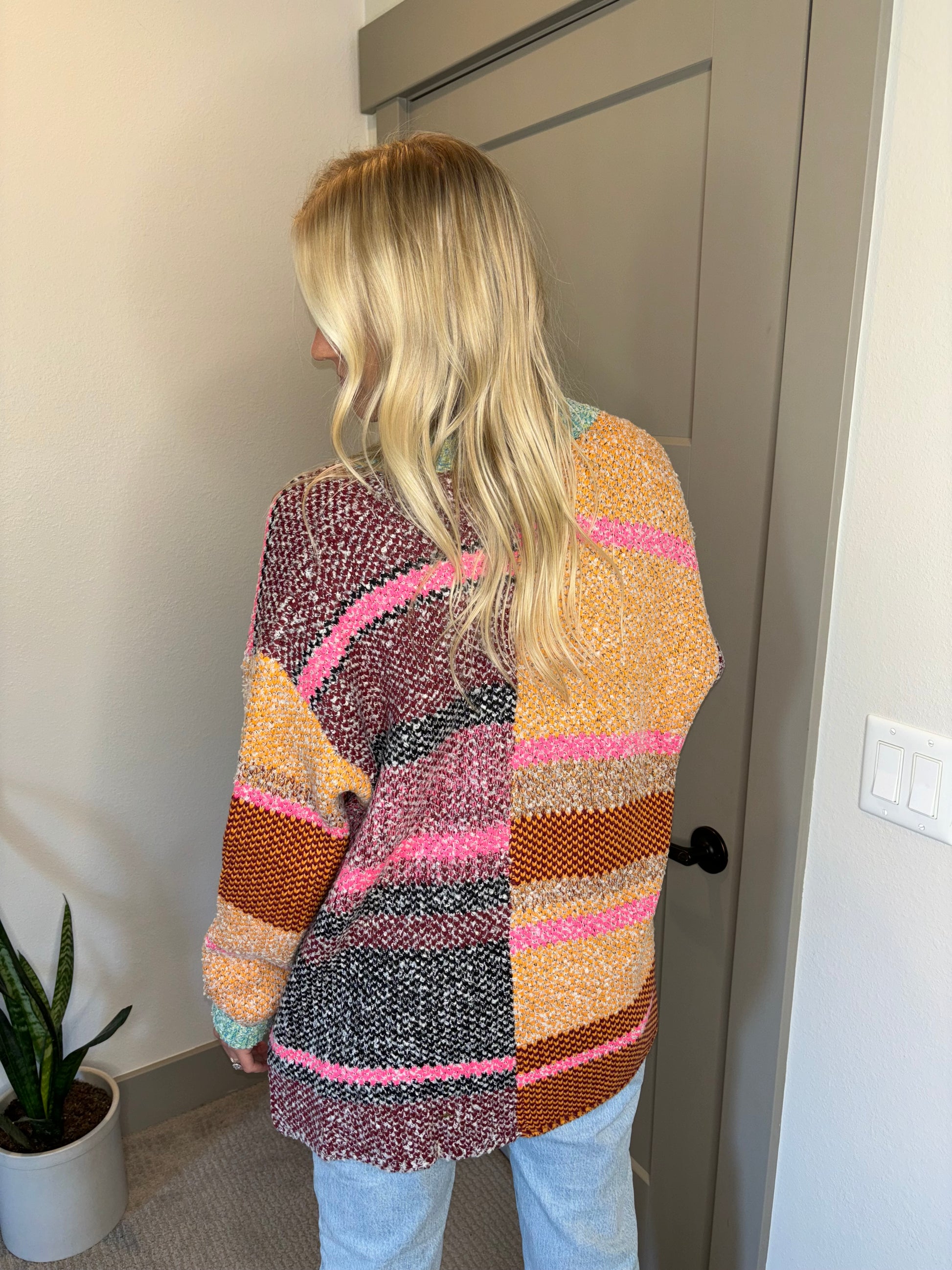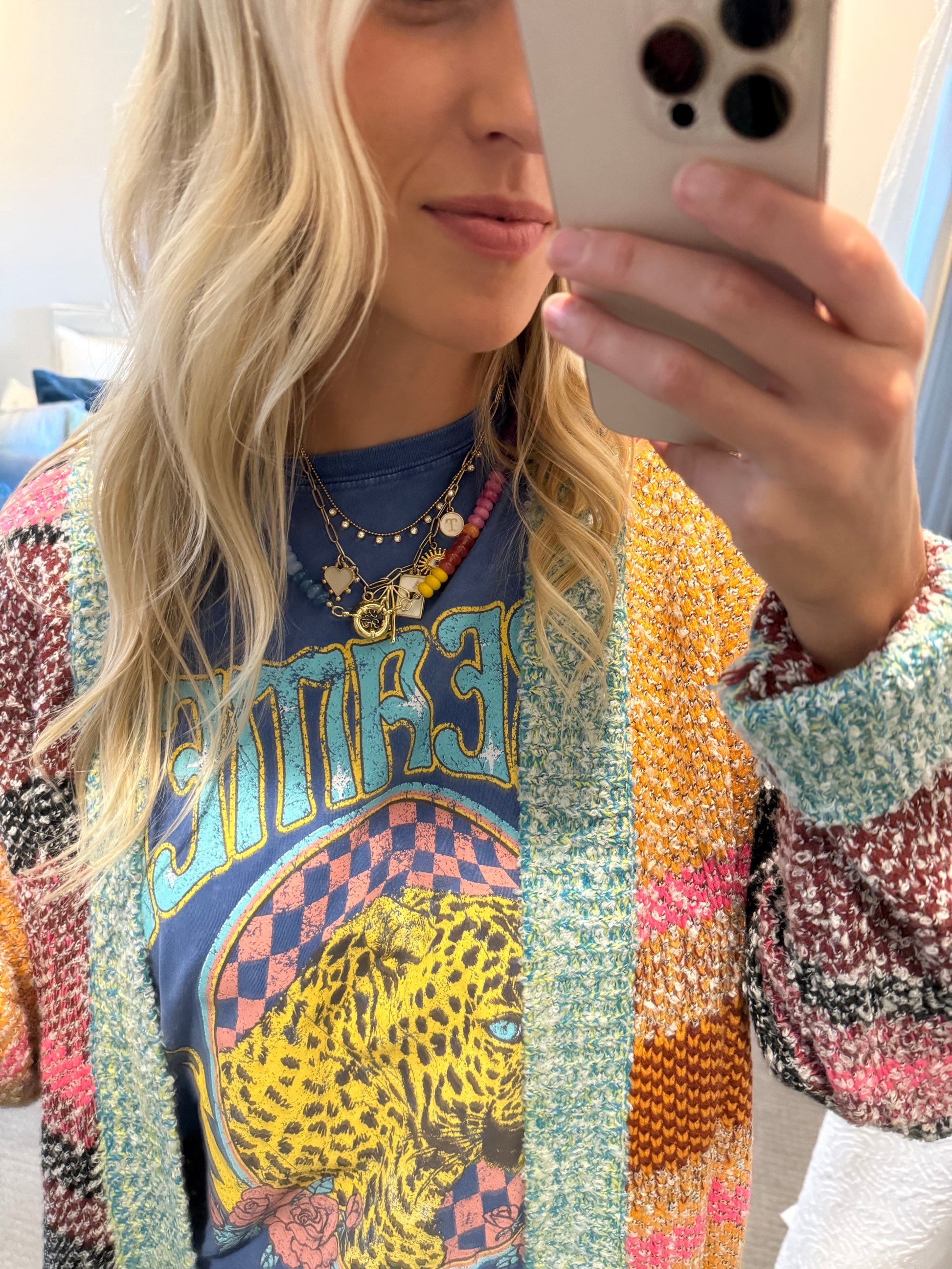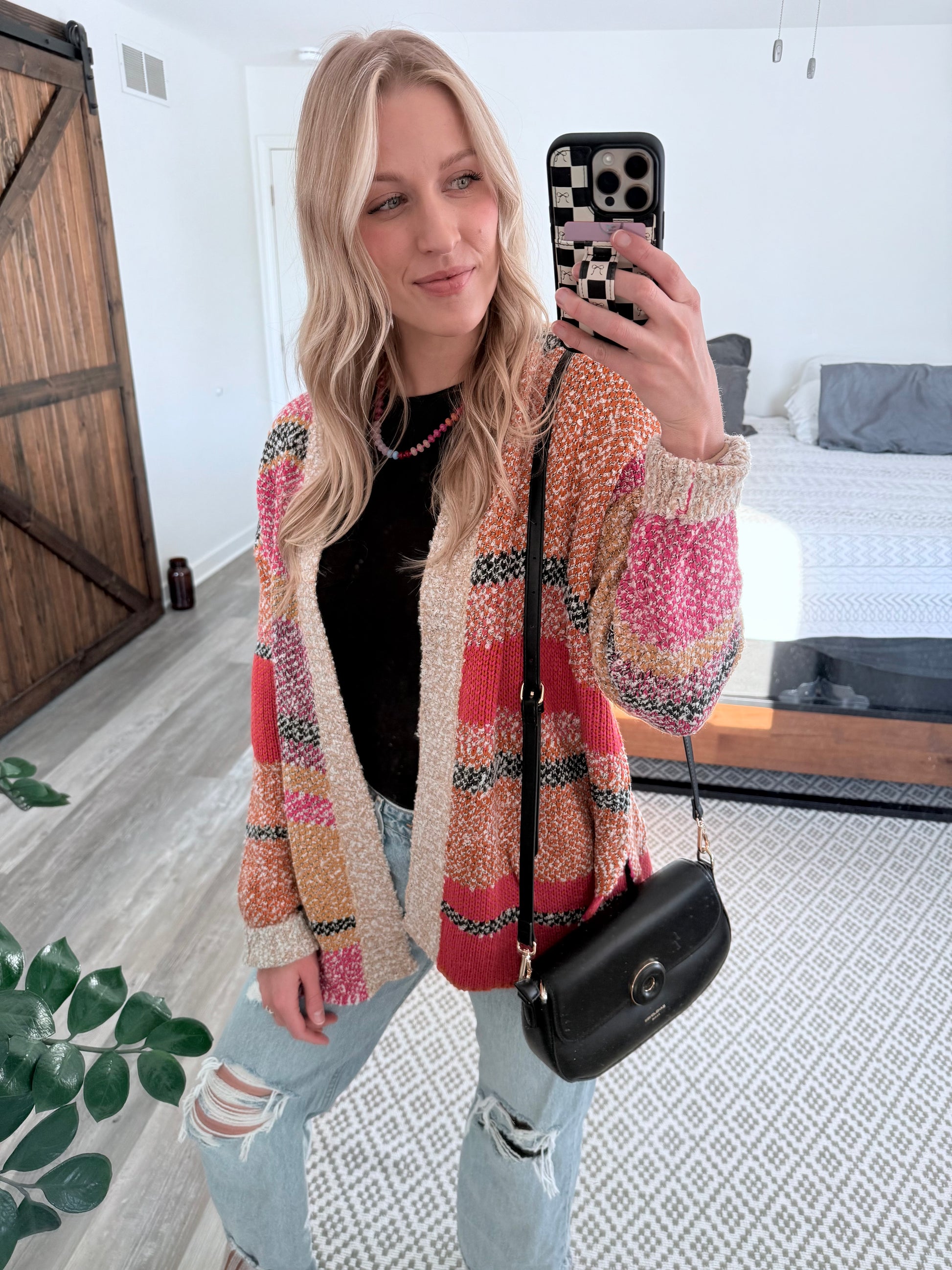 Discover the ultimate versatility with our colorful oversized cardigan, perfect for both days in the office and casual evenings. Enjoy the soft sweater material and the ease of transition from casual to dressy. You will love the soft material against your skin making it so cozy and comfortable you won't ever want to take it off.